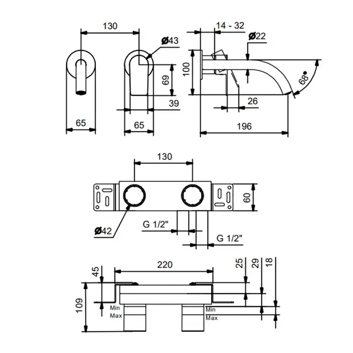 Fantini MYO Смесители из стены для раковины наружная часть, цвет: хром