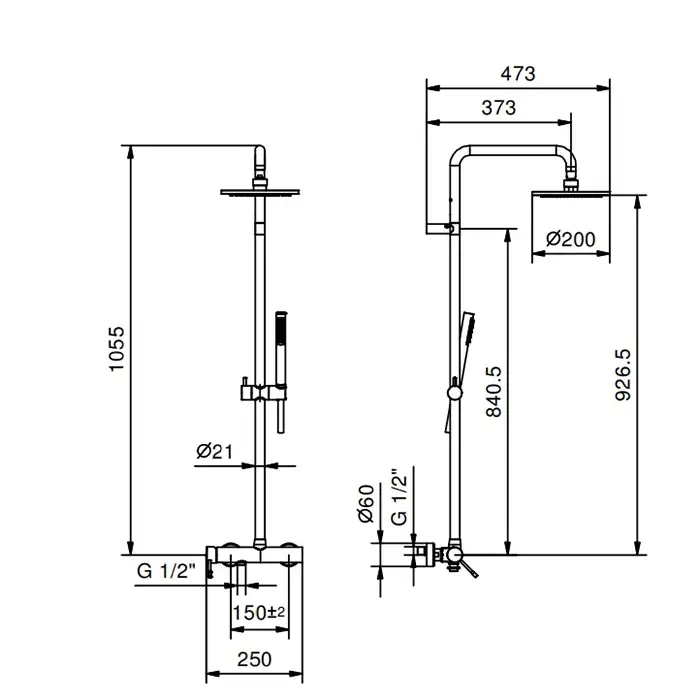 Fantini Nostromo Душевая стойка, с верхнем душем 20см., с ручным душем и смесителем, цвет: цвет: черный матовый