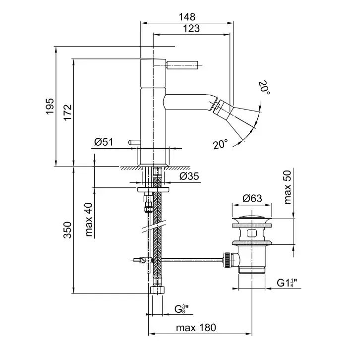 Fantini Nostromo Смеситель для биде, 1 отв., с донным клапаном, цвет: хром