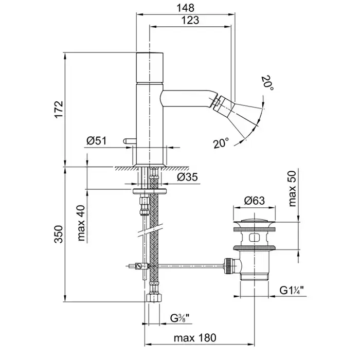 Fantini Nostromo Смеситель для биде, 1 отв., с донным клапаном, цвет: хром