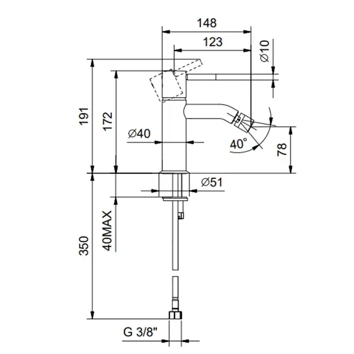 FANTINI NOSTROMO Смеситель для биде на 1 отверстие, однорычажный, без донного клапана, цвет черный матовый