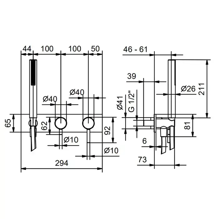 Fantini Nostromo Смеситель для душа, встраиваемый, на 2 источника, с ручн душем, (наружняя часть), цвет: хром