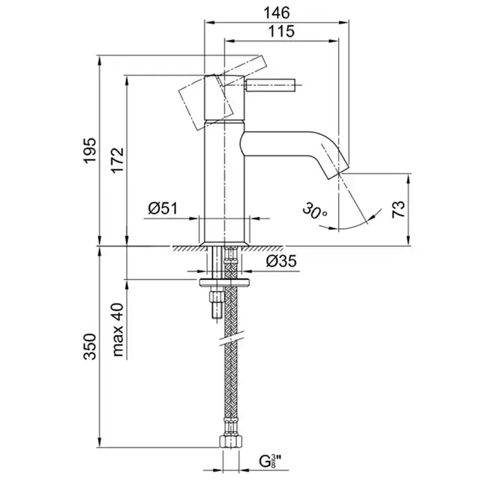 Fantini Nostromo Смеситель для раковины, 1 отв., без донного клапана, излив 115мм, цвет: хром