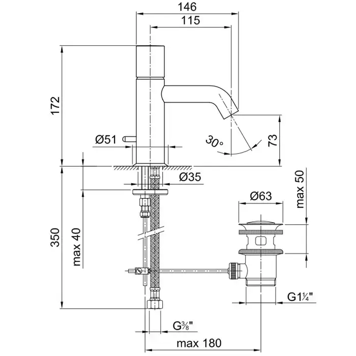 Fantini Nostromo Смеситель для раковины, 1 отв., с донным клапаном, излив 115мм, цвет: хром