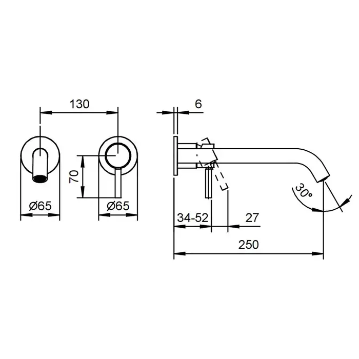 Fantini Nostromo Смеситель для раковины, встраиваемый, на 2 отв, без донного клапана, излив 250мм (наружняя часть), цвет: хром