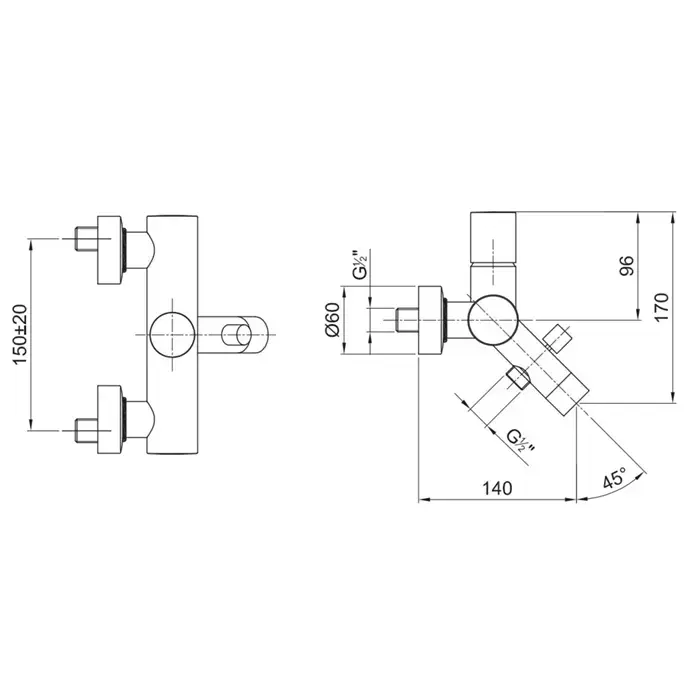 Fantini Nostromo Смеситель для ванны, настенный, на 2 источника, излив 140мм, цвет: хром