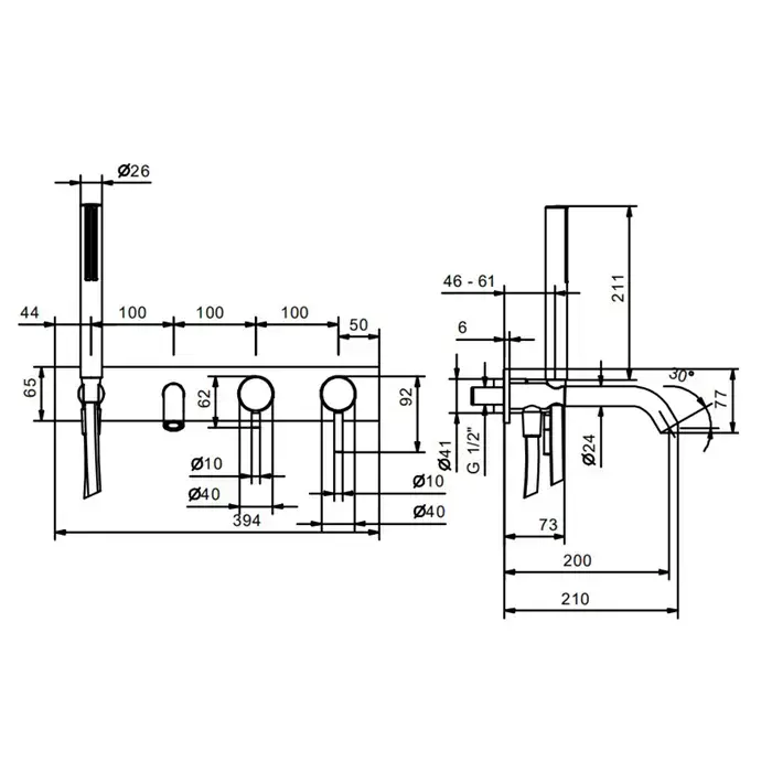Fantini Nostromo Смеситель для ванны, встраиваемый, с ручн душем, излив 200мм, (наружняя часть), цвет: хром