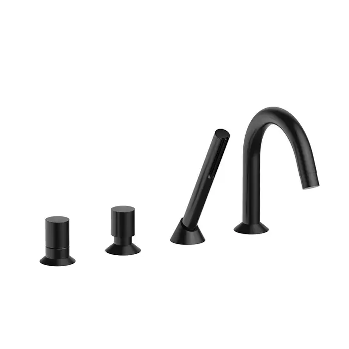Fantini Nostromo Смеситель на борт ванны, 4 отв., с ручн душем, излив 19.5см, цвет: черный матовый