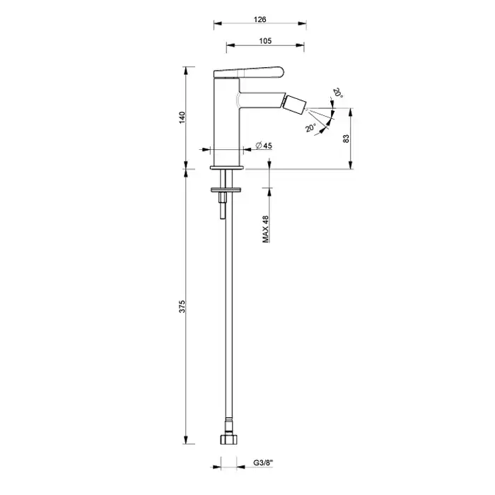 Fantini Torino Смеситель для биде на 1 отверстие, излив 10,5 см, с донн клап, цвет: хром