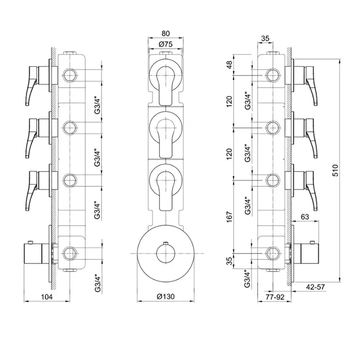 Fantini Внутренняя часть термостатического смесителя для душа, 3 источника, 3/4"