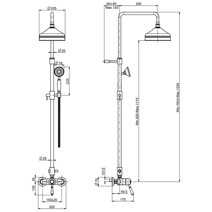 Fima Carlo Frattini Bell Смесит. д/душа, душ. стойка, верх. душ, душевой ком-т, цвет: хром F3365/2CR