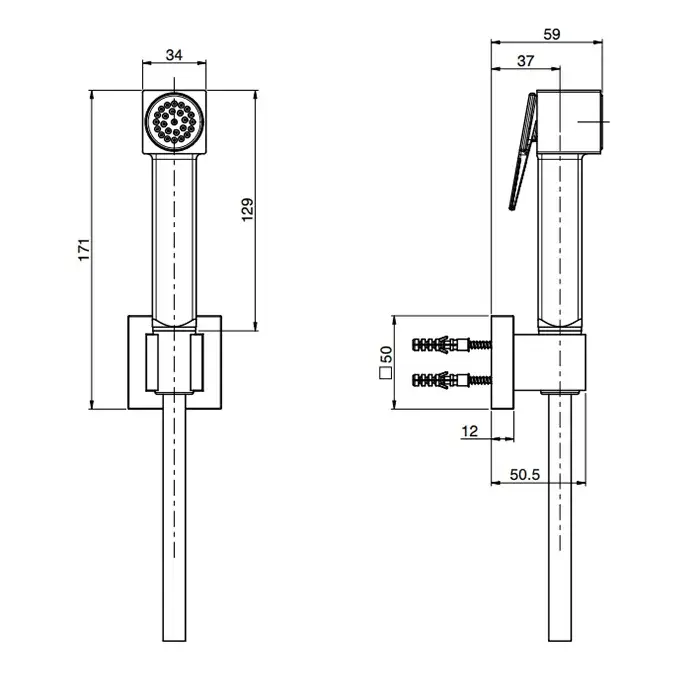 Fima Carlo Frattini Collettività Гигиенический душ, настенный, со шлангом 120см., с угловым вентелем, цвет: черный матовый