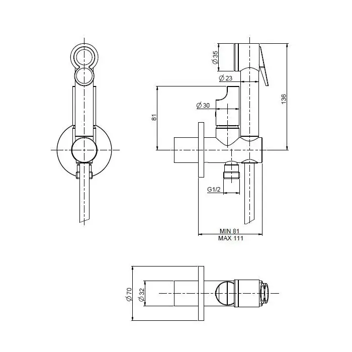 Fima Carlo Frattini Collettività Гигиенический душ, настенный, со шлангом 120см., с угловым вентелем, цвет: черный матовый