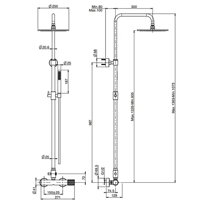 Fima Carlo Frattini Colonne doccia Душевая стойка, верхний душ 25см., с держателем и ручным душем, цвет: черный матовый