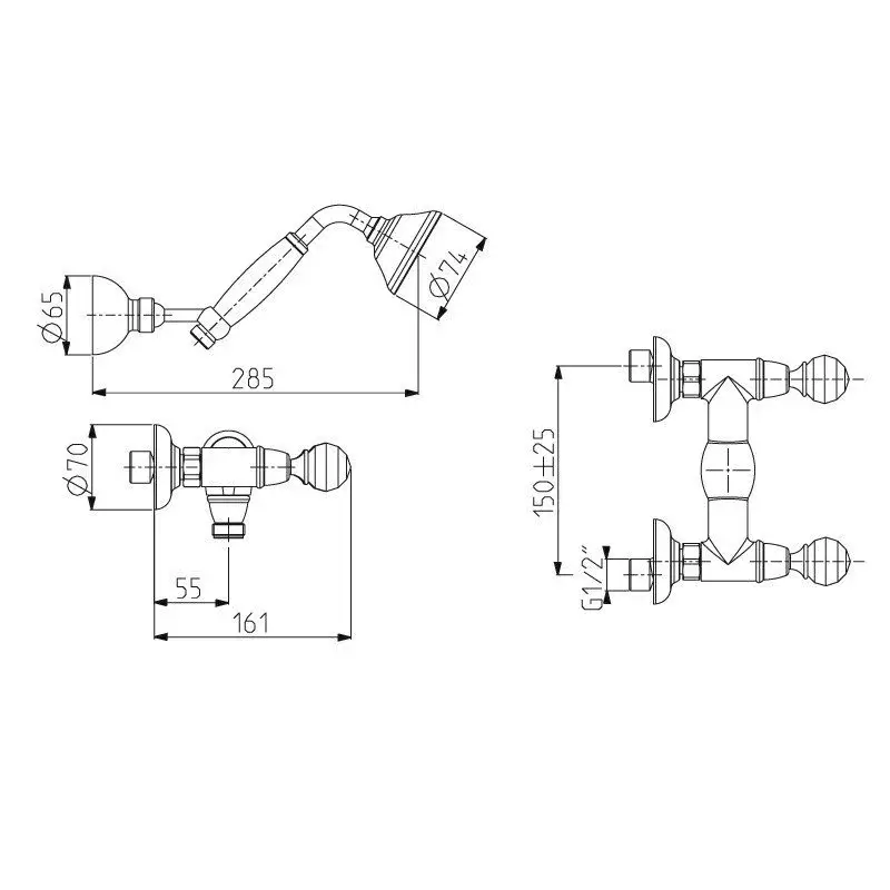 Fima Carlo Frattini Elizabeth Chic Смесит., душ. штанга, верх. душ, душ.ком-т, цвет: хром F5085/2CCR