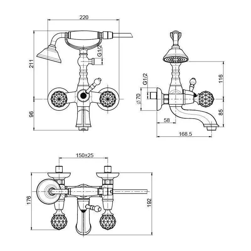 Fima Carlo Frattini Elizabeth Chic Смеситель для ванны, с душевым комплектом, цвет: хром F5084CCR