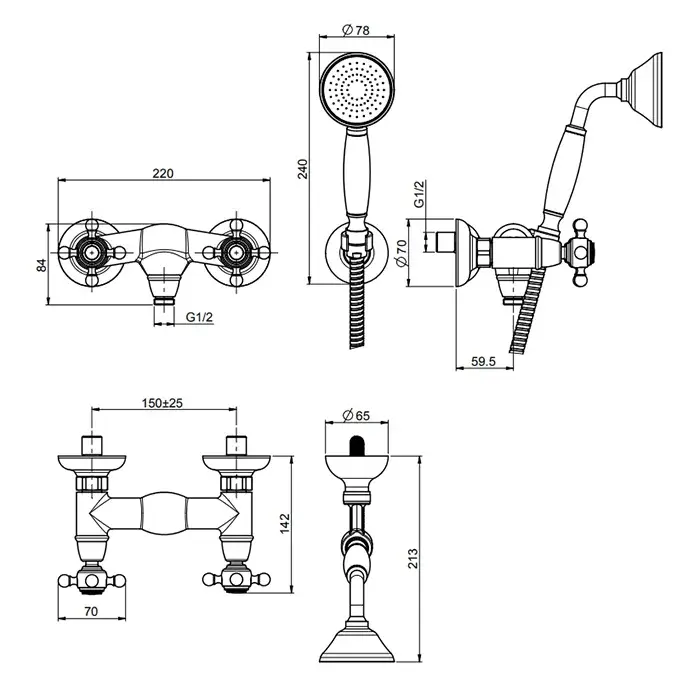 Carlo Frattini Elizabeth Душевая стойка, в комплекте: стойка, ручной душ, шланг, верхняя лейка, цвет: золото