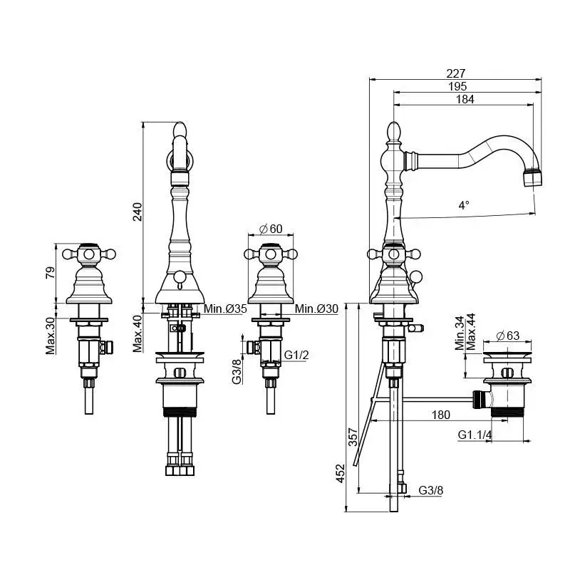 Fima Carlo Frattini Elizabeth Смеситель на раковину, на 3 отверстия, цвет: хром F5081CR