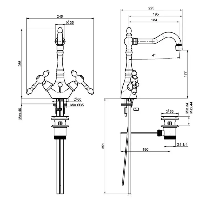 FIMA Carlo Frattini Epoque Смеситель для раковины настенный F5051/5CR, на 3 отв., излив 160 мм., внешняя часть, с донным клапаном click-clack, цвет: хром