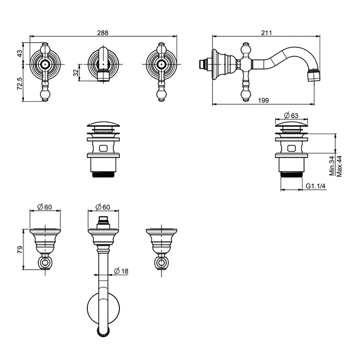 Fima Carlo Frattini Epoque Смеситель для раковины встраиваемый, излив 20 см, цвет: gold F5051L/5OR