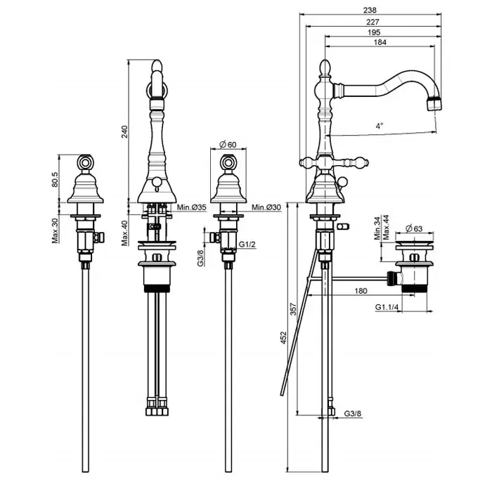 FIMA Carlo Frattini Epoque Смеситель для раковины настенный F5051/5CR, на 3 отв., излив 160 мм., внешняя часть, с донным клапаном click-clack, цвет: хром
