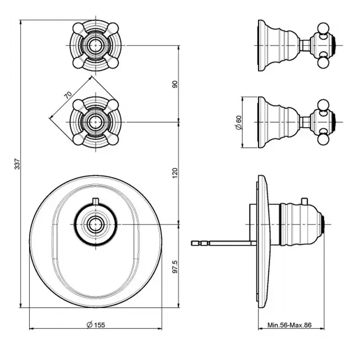 Fima Carlo Frattini Fimatherm Смеситель для душа встроенный, 2 запорных вентиля, цвет хром F5113X2CR