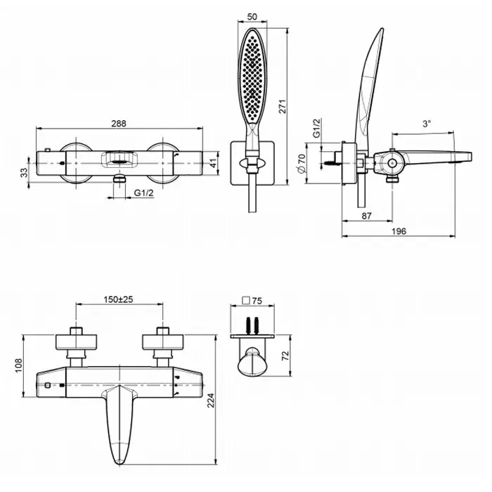 Fima Carlo Frattini Fimatherm Смеситель для душа, встраиваемый, термостатический, цвет: хром