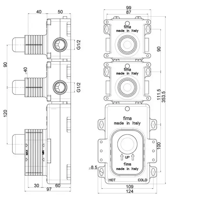 FIMA|Carlo Frattini Внутренняя часть встраиваемого термостатического смесителя для душа, 2 источника