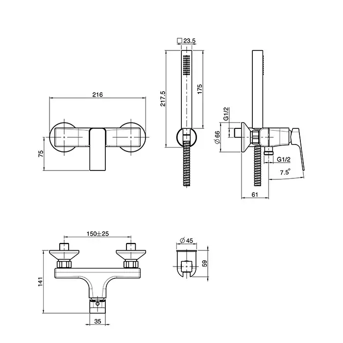 Fima Carlo Frattini Fit Смеситель для душа, настенный, с душ. комплектом, цвет: белый матовый F3385B F3385BS