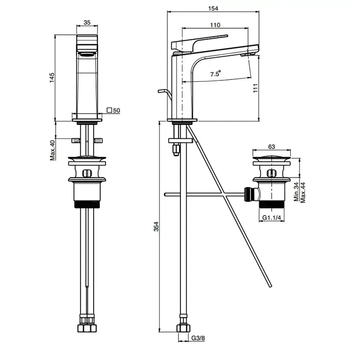 Fima Carlo Frattini Fit Cмеситель для раковины, встраиваемый, излив: 15.4см., с донным клапаном, цвет: хром