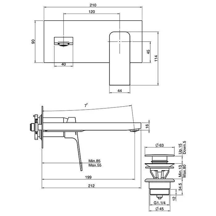 Fima Carlo Frattini Fit Cмеситель для раковины, встраиваемый, излив: 14.9см., с донным клапаном, цвет: хром