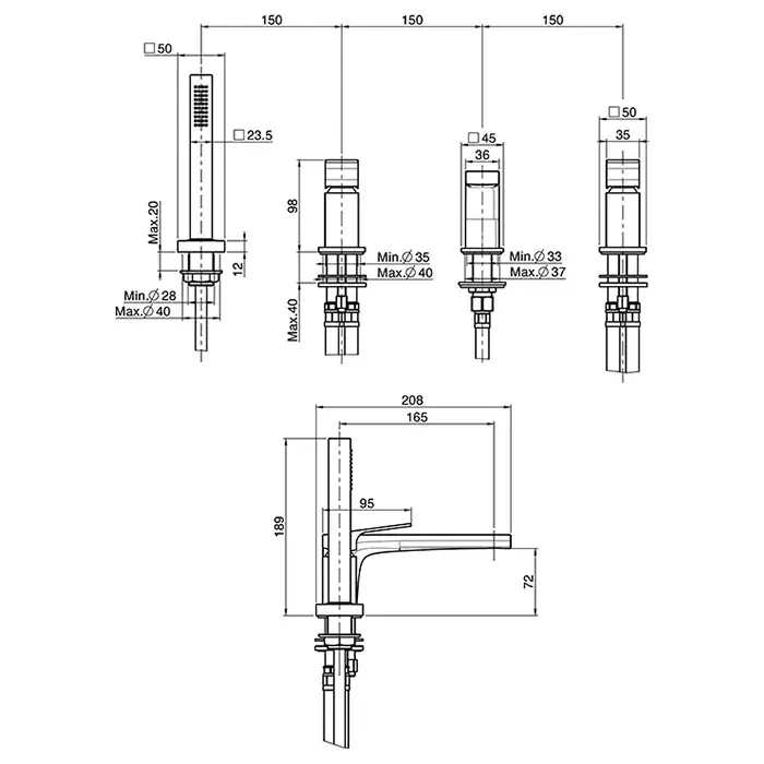 Fima Carlo Frattini Fit Смеситель на борт ванны, на 4 отв., с ручным душем, цвет: хром