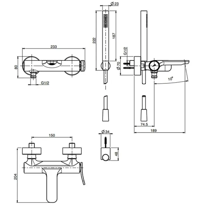 Fima Carlo Frattini Flo' Излив для ванны настенный 20,1 см, цвет: chrome F2222CR