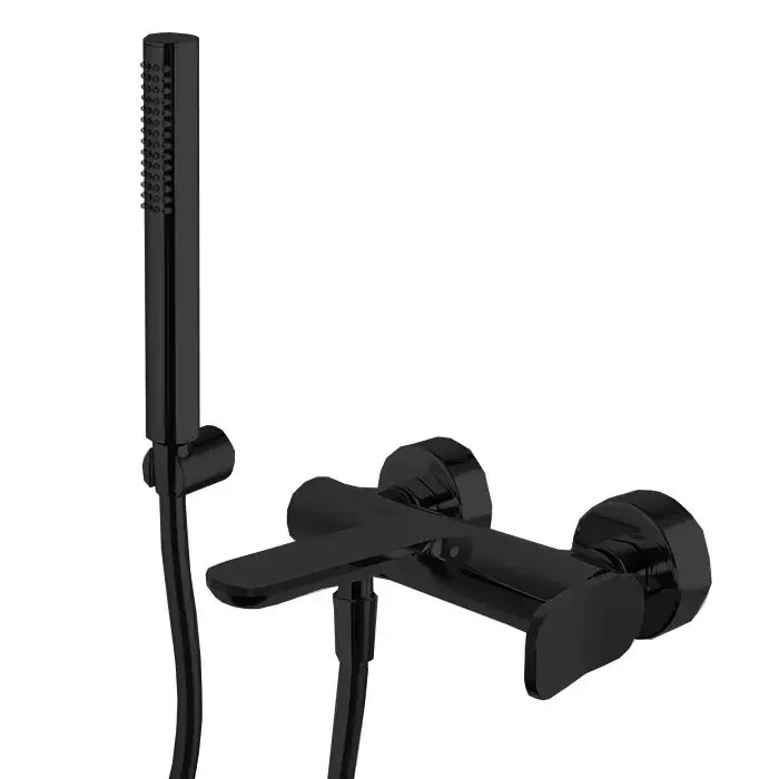 Fima Carlo Frattini Flo Смеситель для ванны, настенный, с ручным душем, цвет: черный матовый
