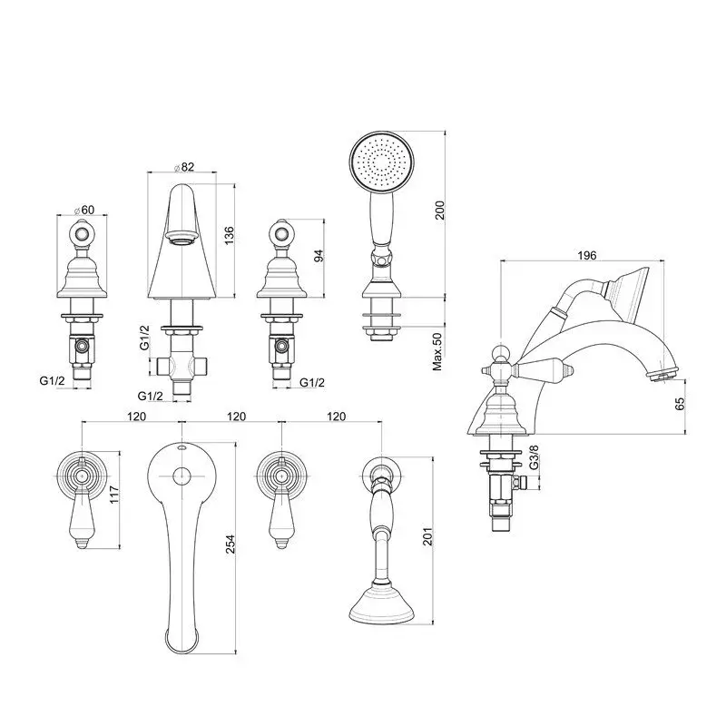Fima Carlo Frattini Herend Chic Смесит., душ. штанга, верх. душ, душ. ком-т, цвет: хром F5405/2CCR