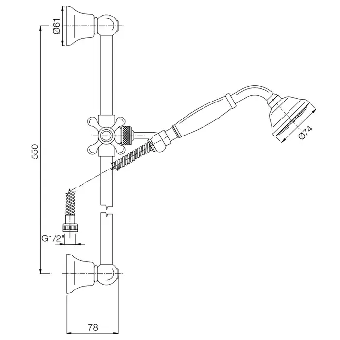 Fima Carlo Frattini Herend Душевой гарнитур: штанга, шланг 150 см, ручной душ, держатель, цвет: хром F2044/3CR