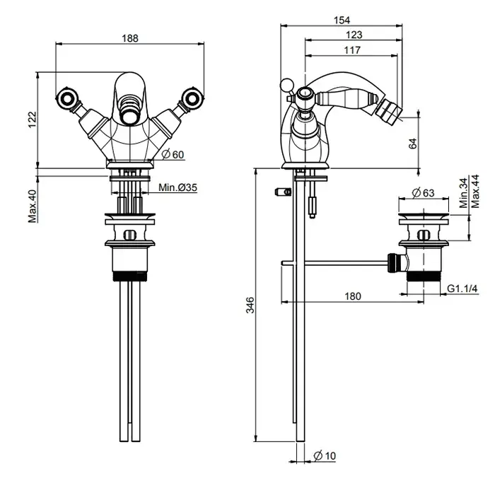 Carlo Frattini Herend Смеситель на биде на 3 отв., с вращающимся изливом, цвет: бронза