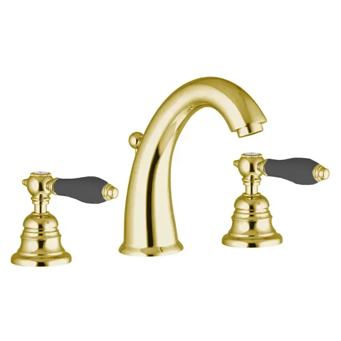 Fima Carlo Frattini Herend Смеситель для раковины, на 3 отв., с донным клапаном, черные ручки, цвет: золото