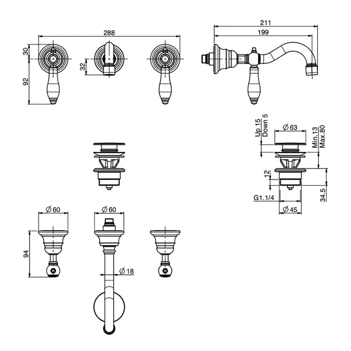 Fima Carlo Frattini Herend Смеситель для раковины встраиваемый, излив 20 см, цвет: gold F5401L/5CBOR