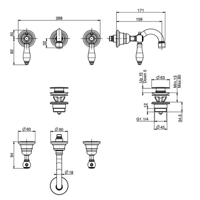 Fima Carlo Frattini Herend Смеситель для раковины встраиваемый, излив 16 см, цвет: chrome F5401/5CBCR