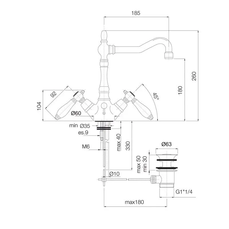 Fima Carlo Frattini Herend Cмеситель для раковины, на 1 отв., с донным клапаном, черные ручки, цвет: золото