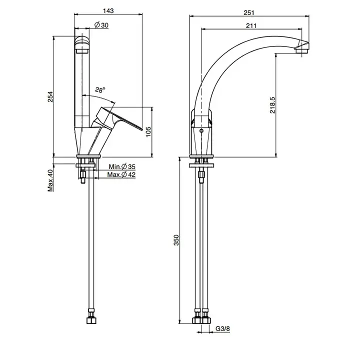 Высота излива, см