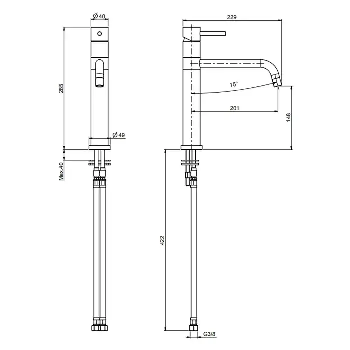 Высота излива, см