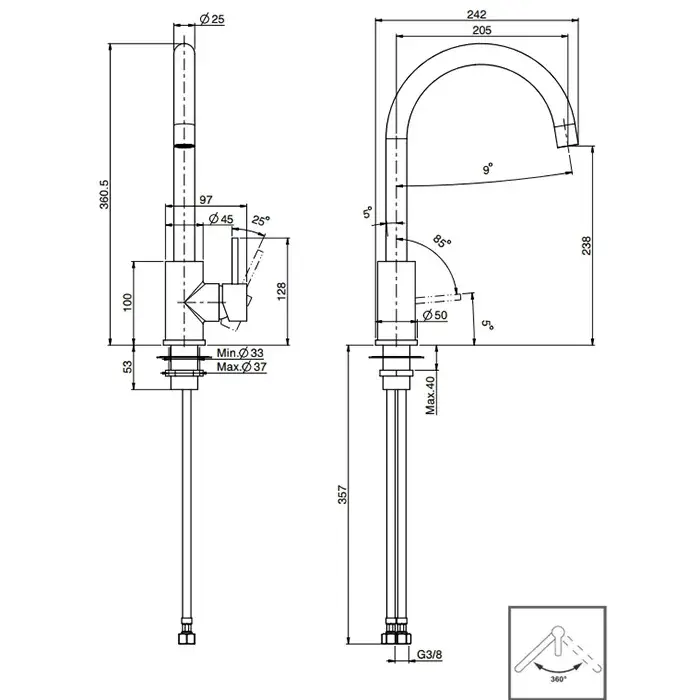 Fima Carlo Frattini Kitchen Смеситель для кухни, поворотный излив 20,5 см, цвет: stainless steel F7057/BINOX
