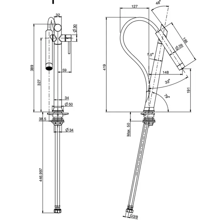 Fima Carlo Frattini Kitchen Смеситель для кухни, на 1 отв., с выдвижной лейкой Mast, цвет: хром