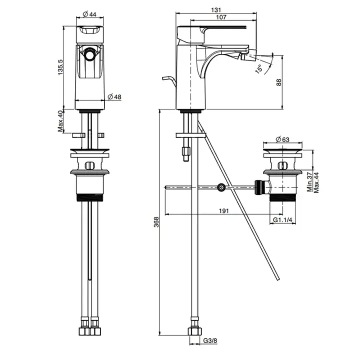 Fima Carlo Frattini Mast Смеситель для биде, без донного клапана, излив 10,7 см, цвет: gold F3132OR.1