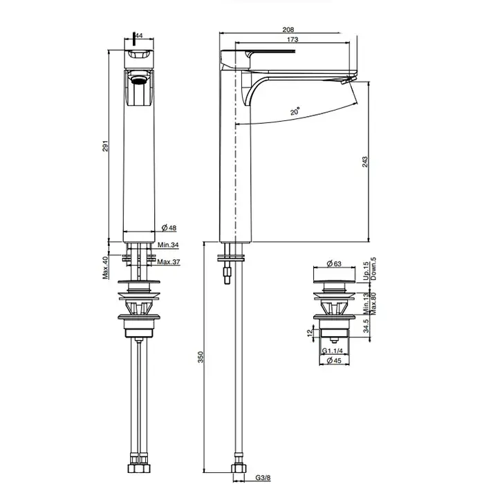 Fima Carlo Frattini Mast Смеситель для раковины, без донного клапана, излив 17,3 см, цвет: gold F3131/HOR.1