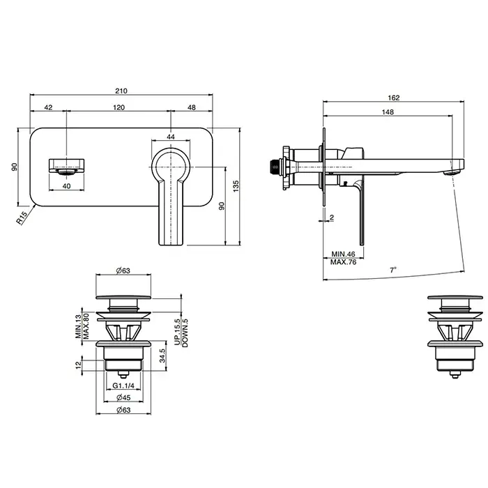 Fima Carlo Frattini Mast Смеситель для раковины встраиваемый, излив 15 см, цвет: black matt F3141WX5NS