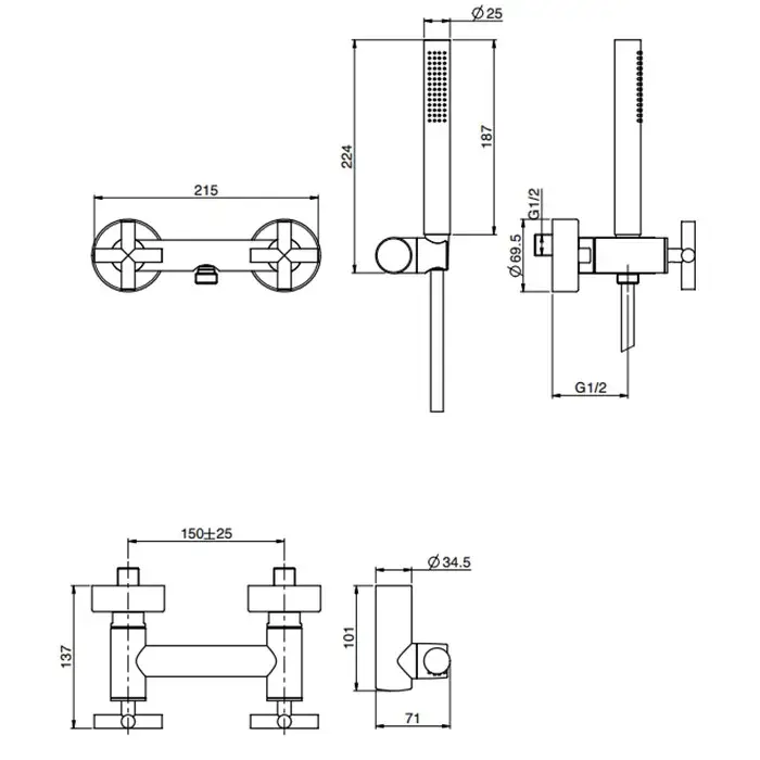 Carlo Frattini Maxima Смеситель для ванны, настенный, с душем, цвет: хром