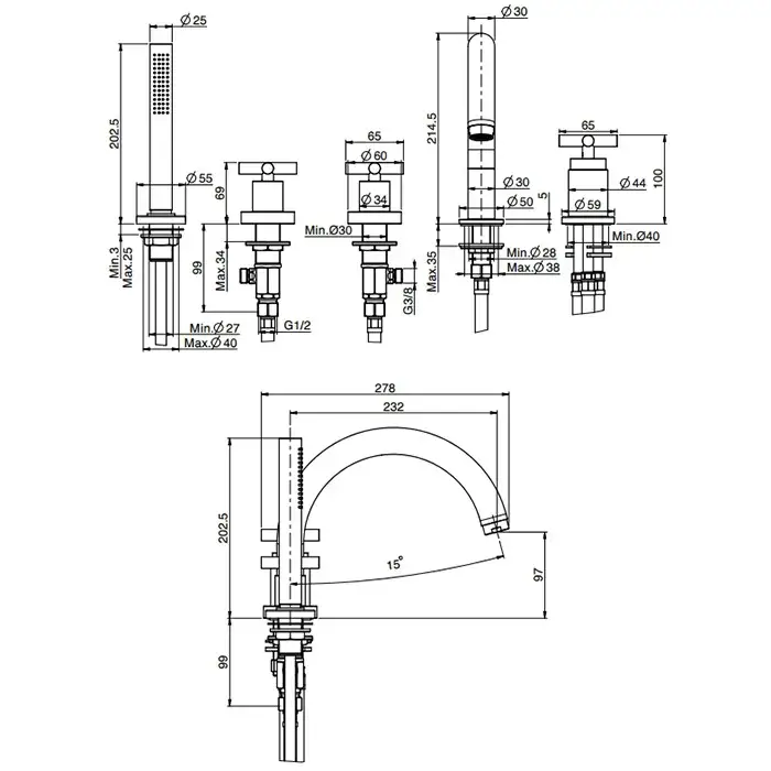 Carlo Frattini Maxima Смеситель для раковины, встраиваемый, на 3 отв., излив 20см., внешняя часть, с донным клапаном, цвет: хром
